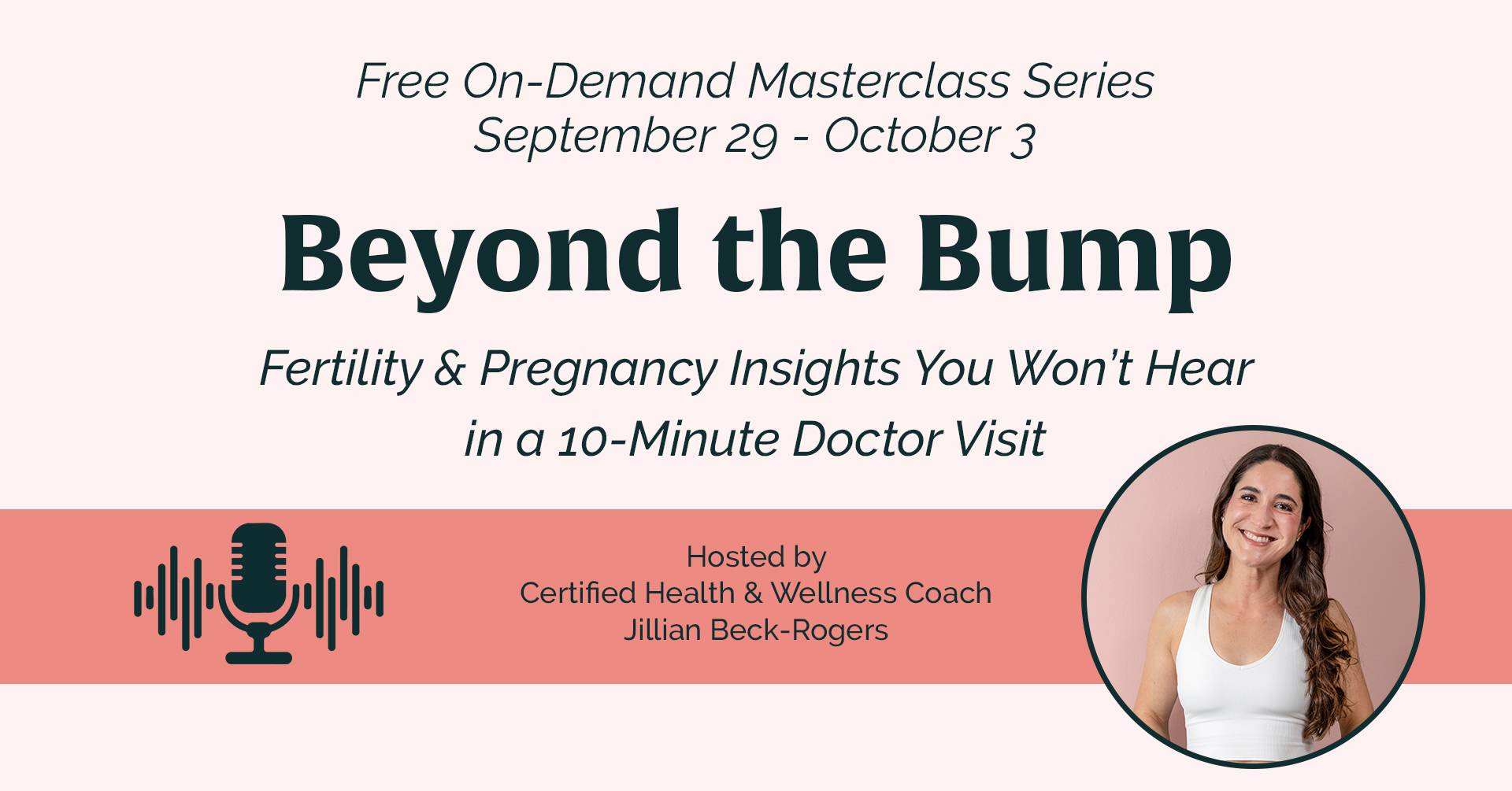 That’s exactly what you’ll find inside Beyond the Bump, a free on-demand masterclass series (Sept 29–Oct 3) hosted by Certified Health & Wellness Coach Jillian Beck-Rogers. It’s 10+ candid conversations with experts in nutrition, somatic therapies, and mind-body wellness—all packed with tools that help your body thrive.